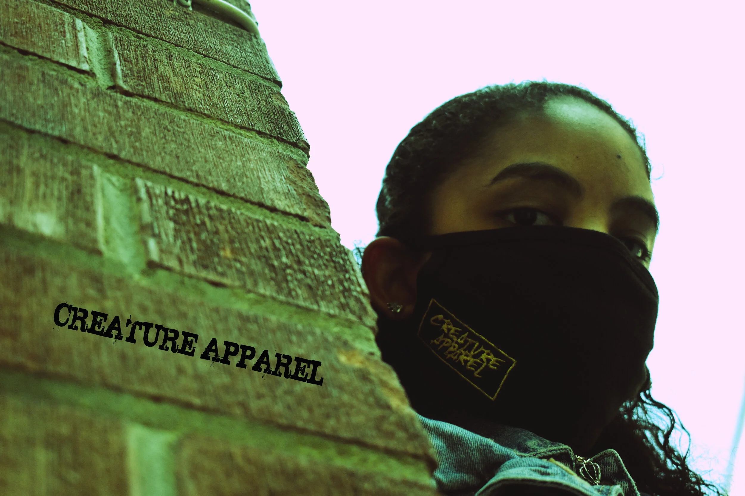 Creature Apparel gold patch cotton adjustable mask with a triple layer antimicrobial. Also comes in various one kind signature patch colours